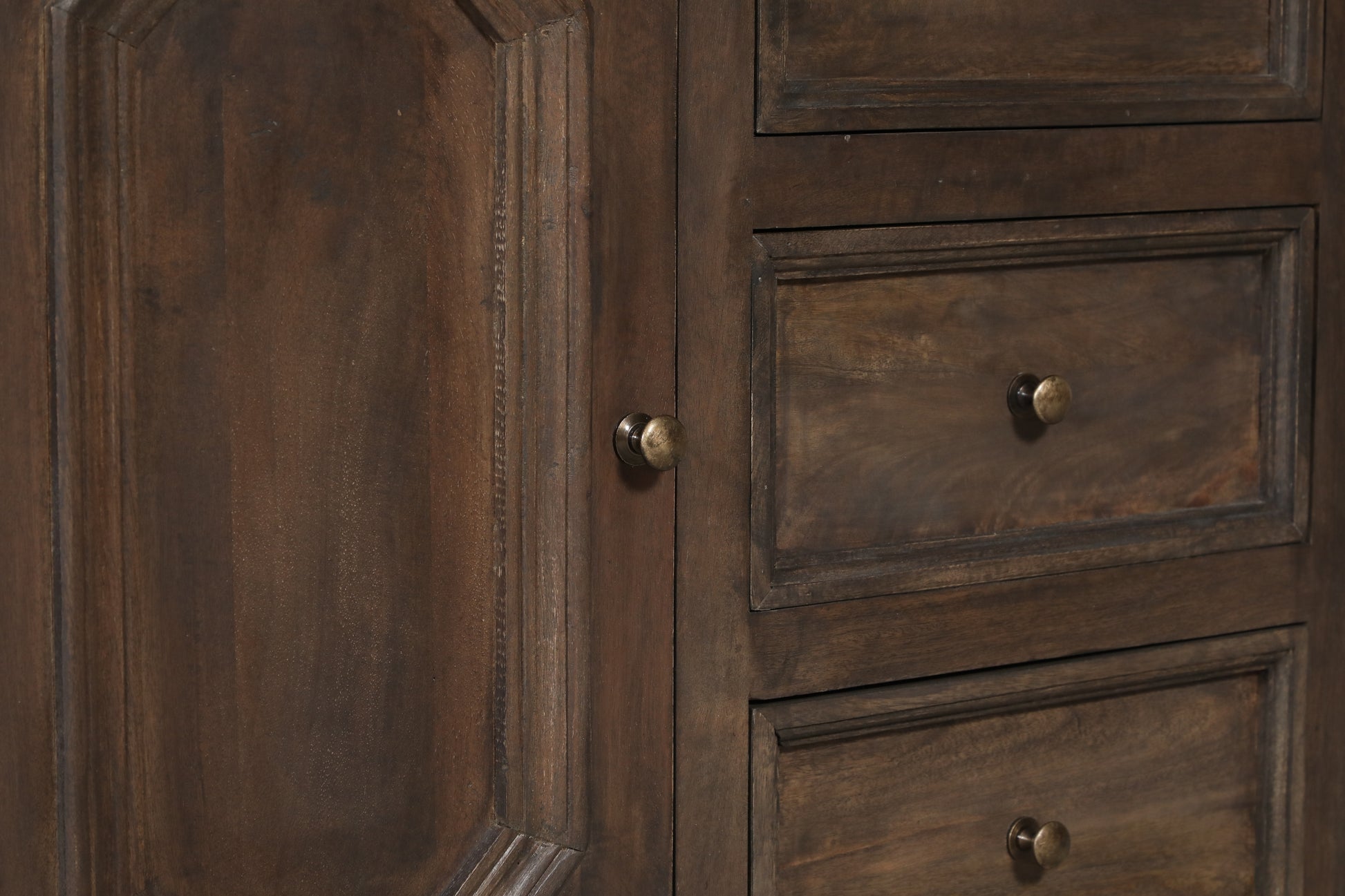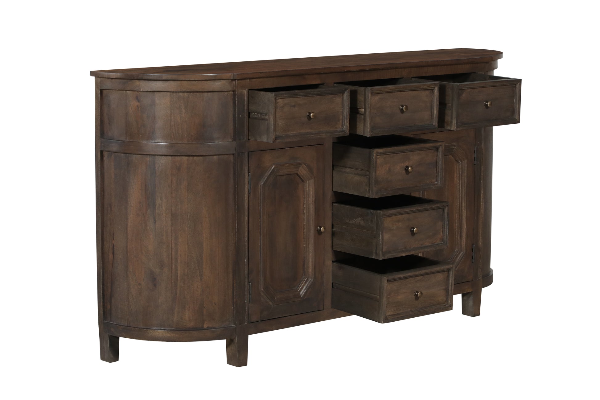 The Andrew Server is constructed from robust mango wood, featuring a classic traditional design. It has 6 drawers plus 2 doors for organizing your living space, while the curved corners bring an elegant touch.
