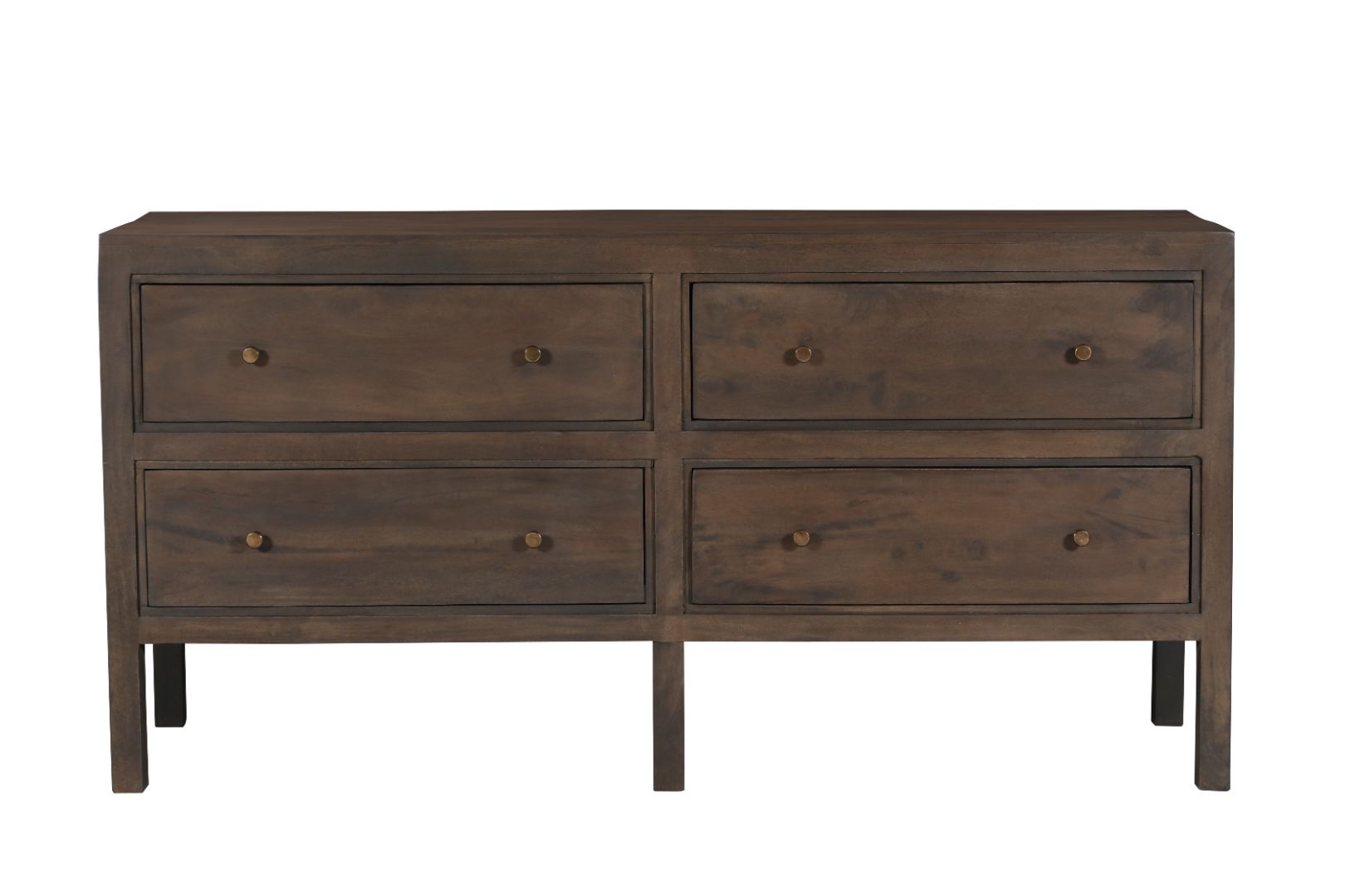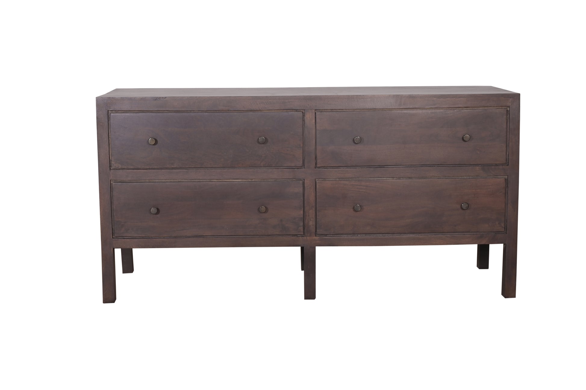 Bradley 4 Door Dresser. Crafted from solid mango wood, this dresser features 4 large drawers to keep your clothes organized. Its simple design adds a touch of elegance to your bedroom. Crafted with quality and functionality in mind, this dresser offers storage and style in one.