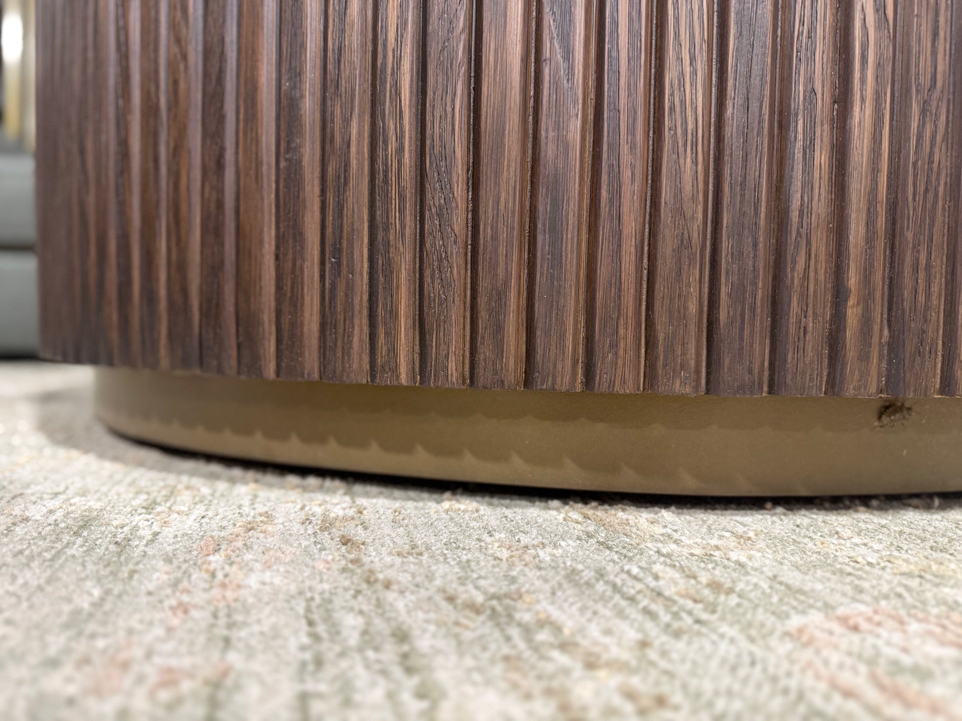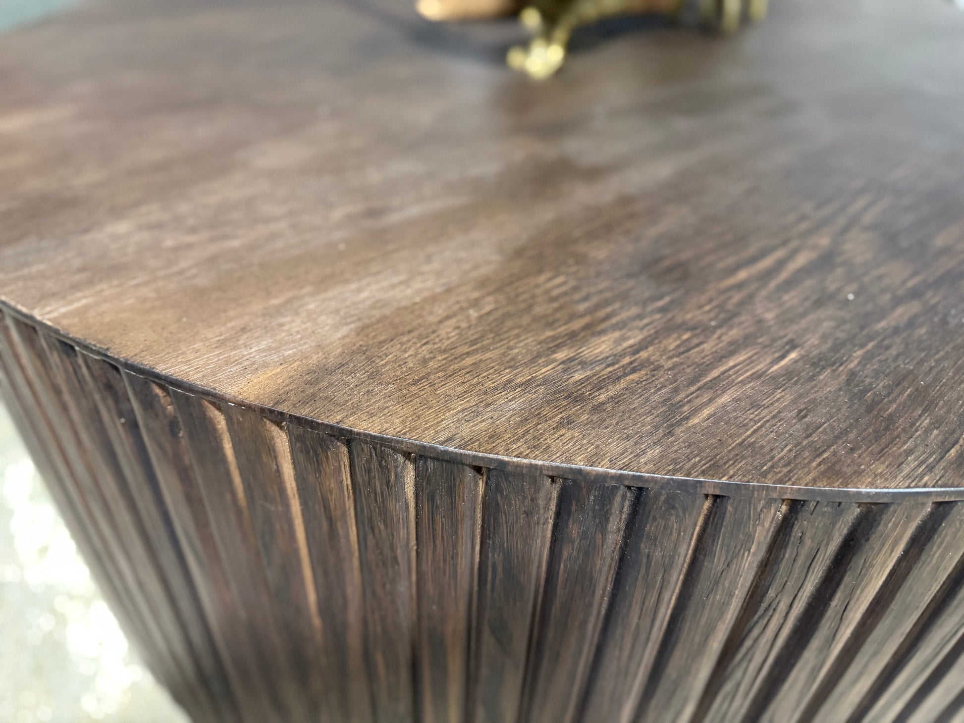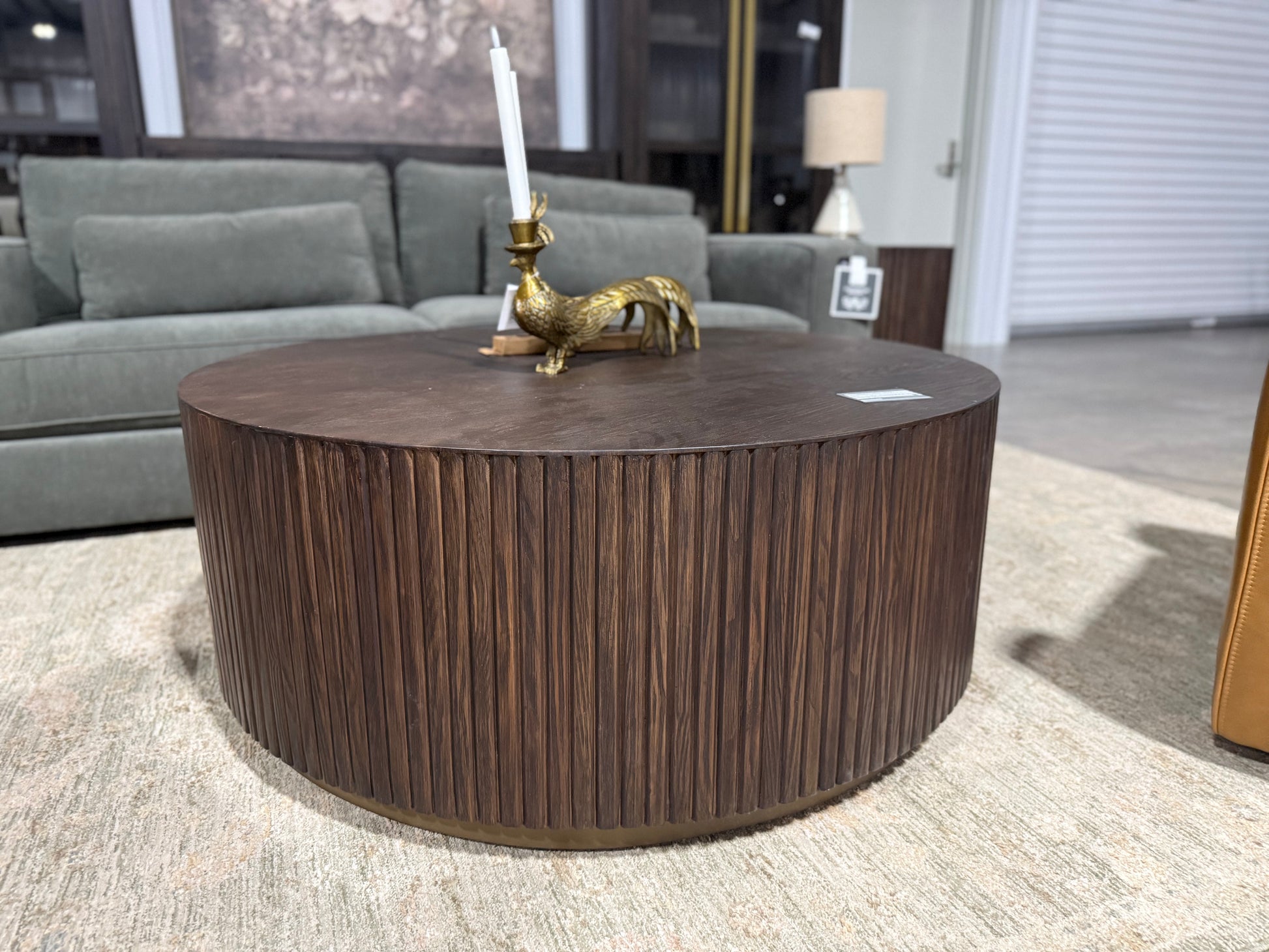 Crafted from solid pine wood, the Hackett Round Coffee Table features a generous 46-inch diameter, offering ample surface area for your living space. Its elegantly reeded sides provide subtle texture and refined detail, combining durability with a timeless aesthetic. This table is designed to enhance both the functionality and style of your room with expert craftsmanship and quality materials.