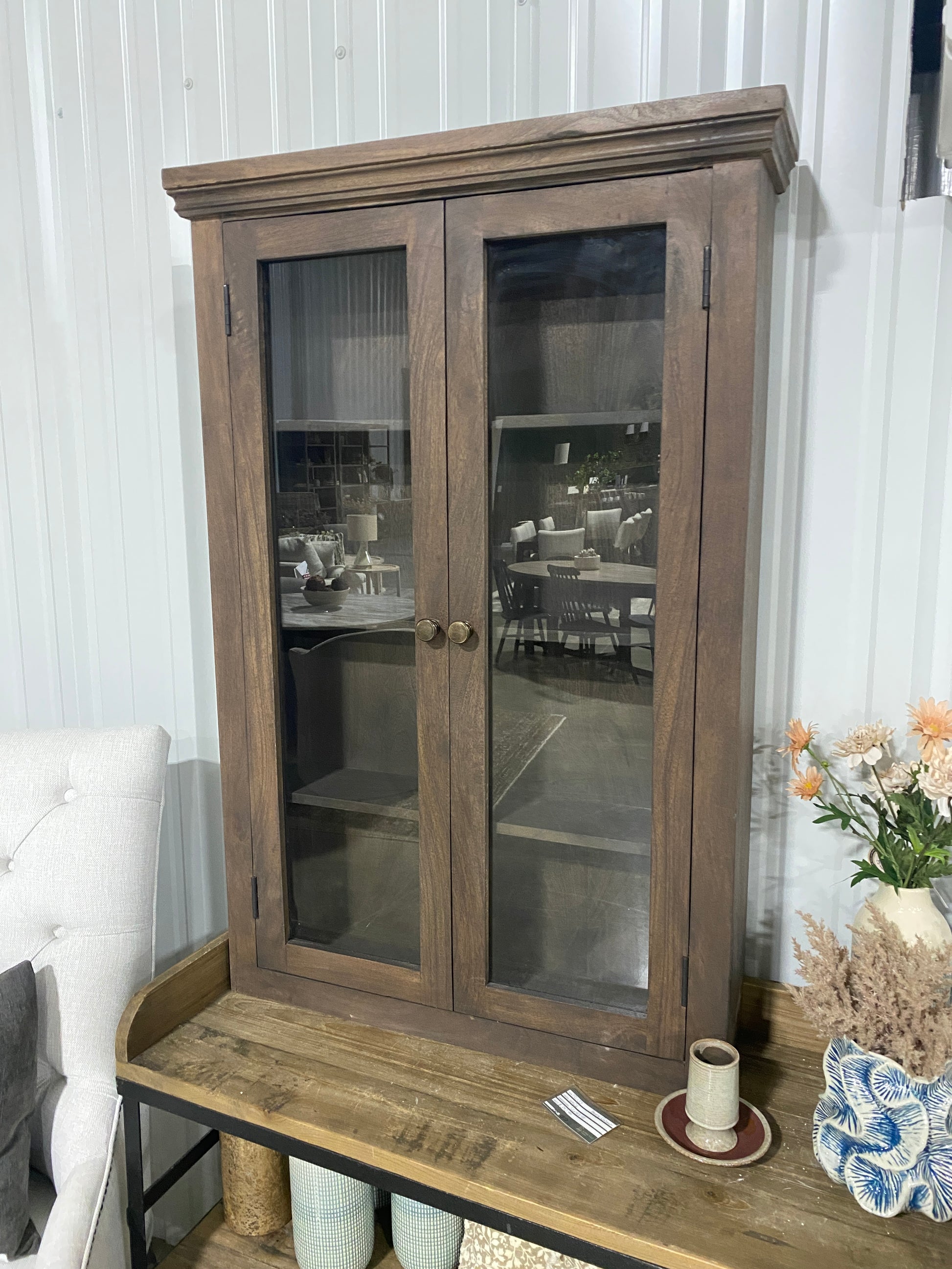 Crafted from solid mango wood and featuring glass paned doors, the Henry Cabinet offers a versatile storage solution for any space. Its compact size allows for easy placement, and it can even be hung on a wall. Add a touch of elegance and functionality to your home with this expertly designed cabinet.