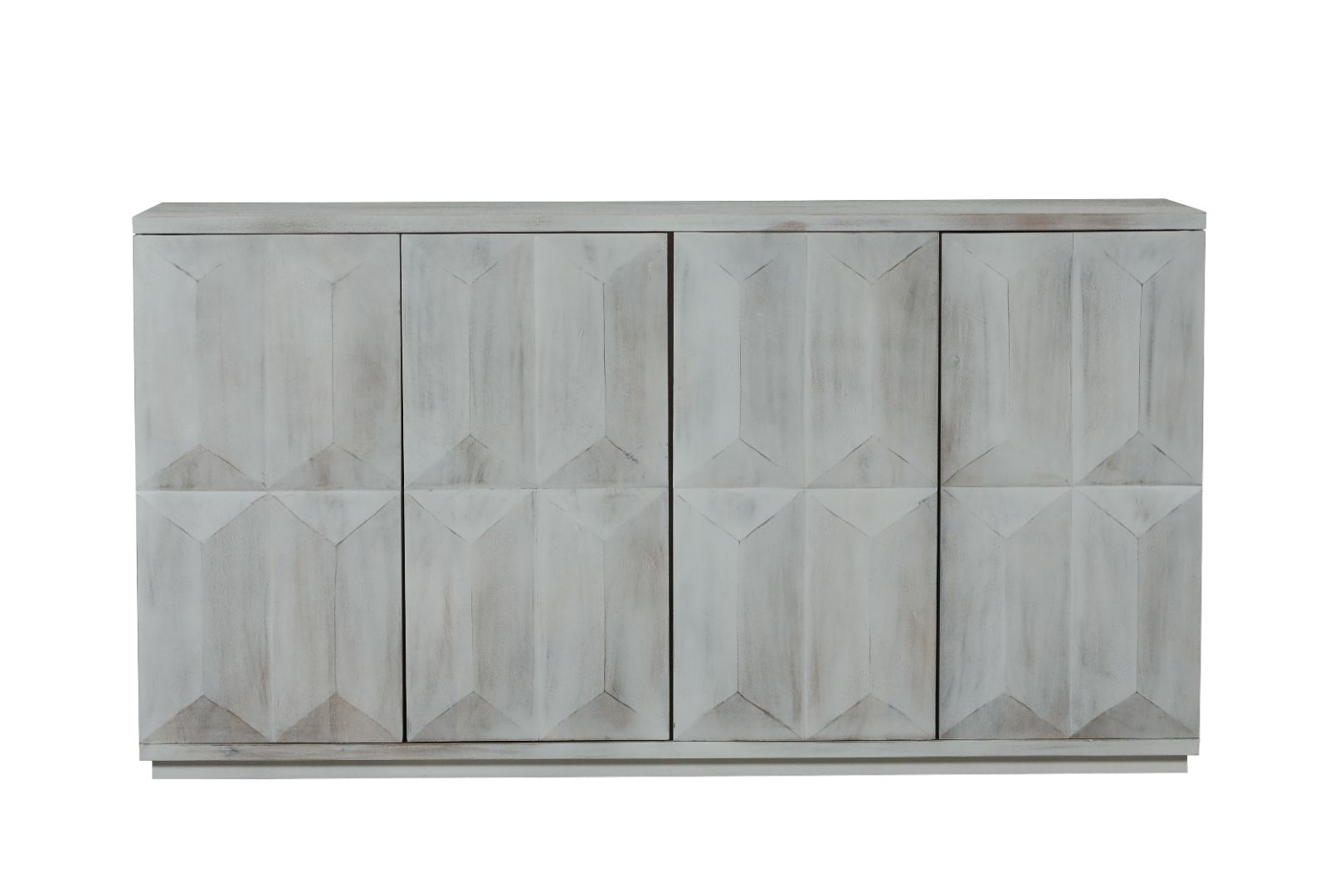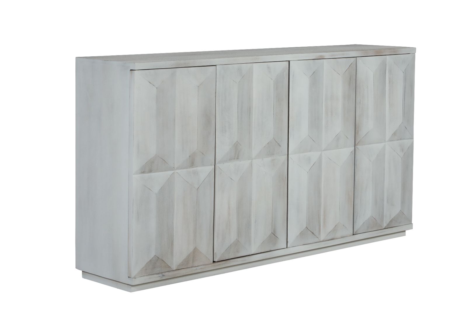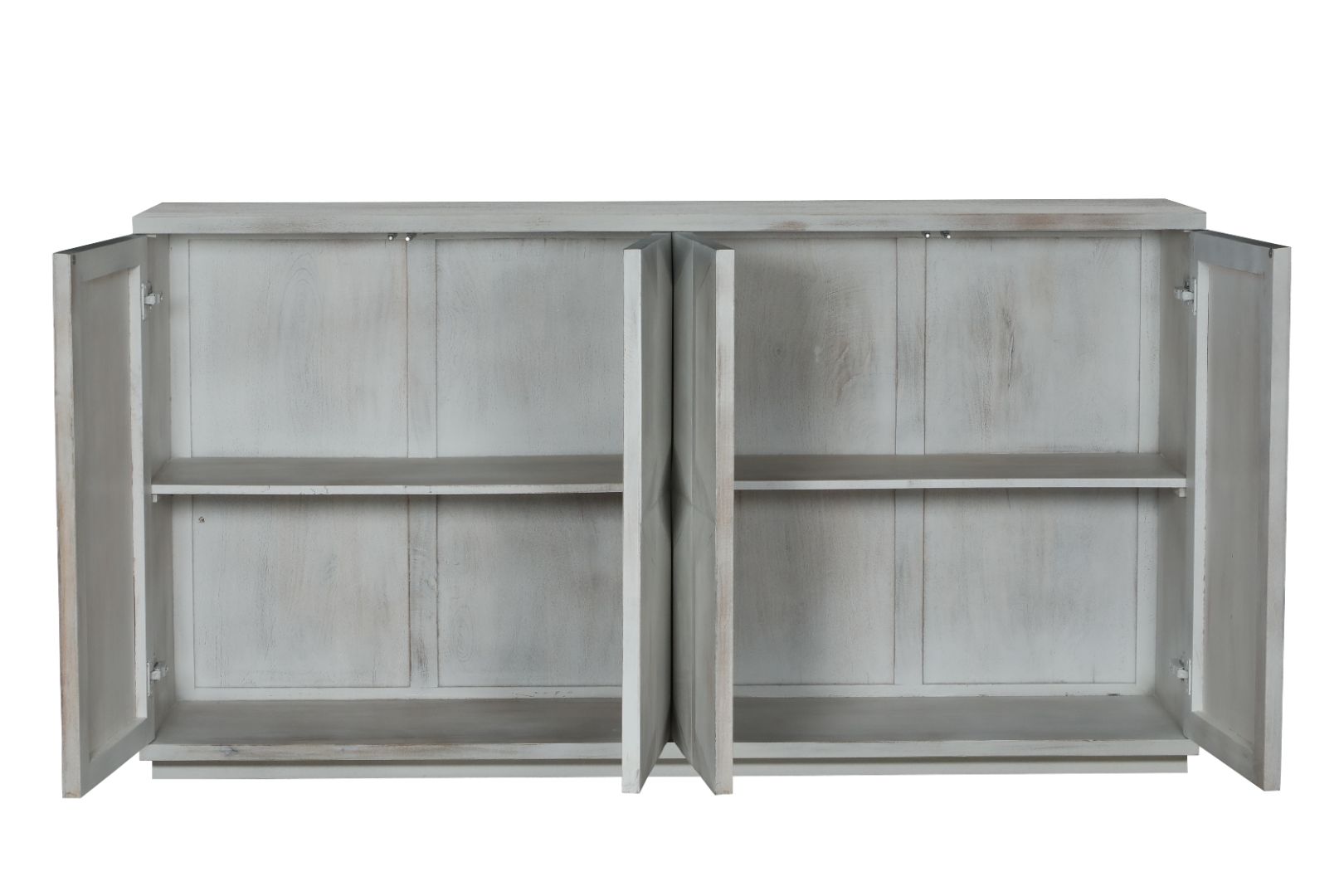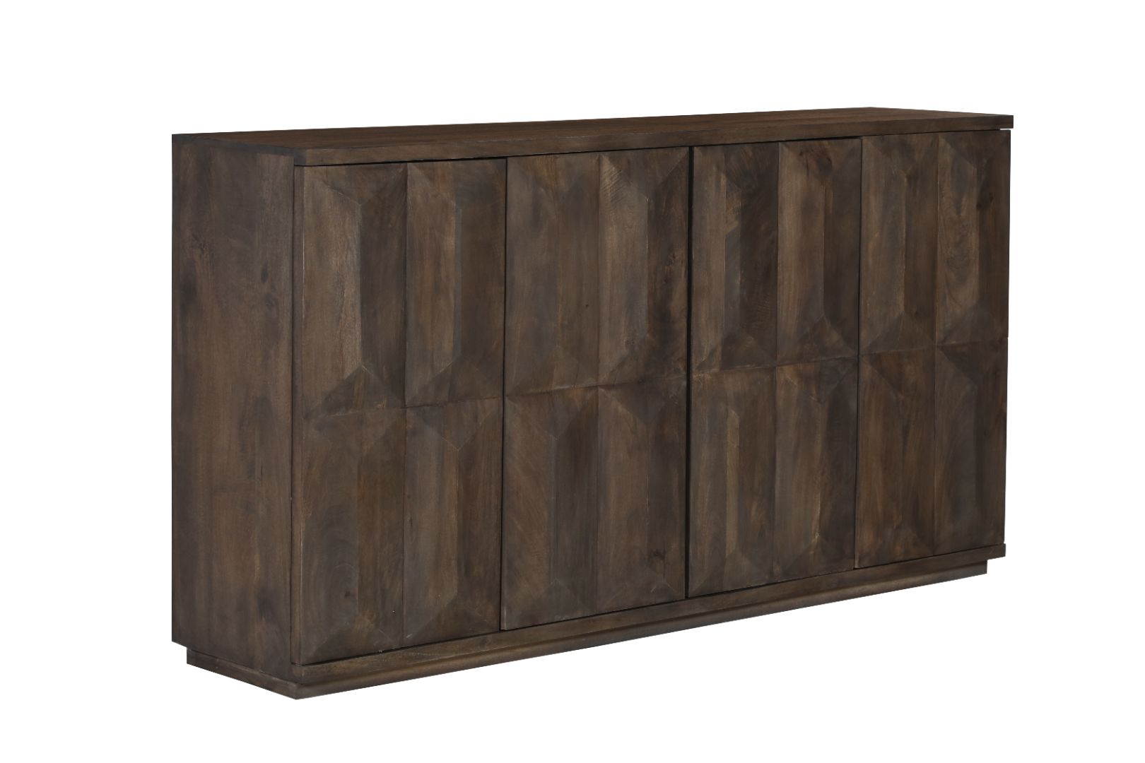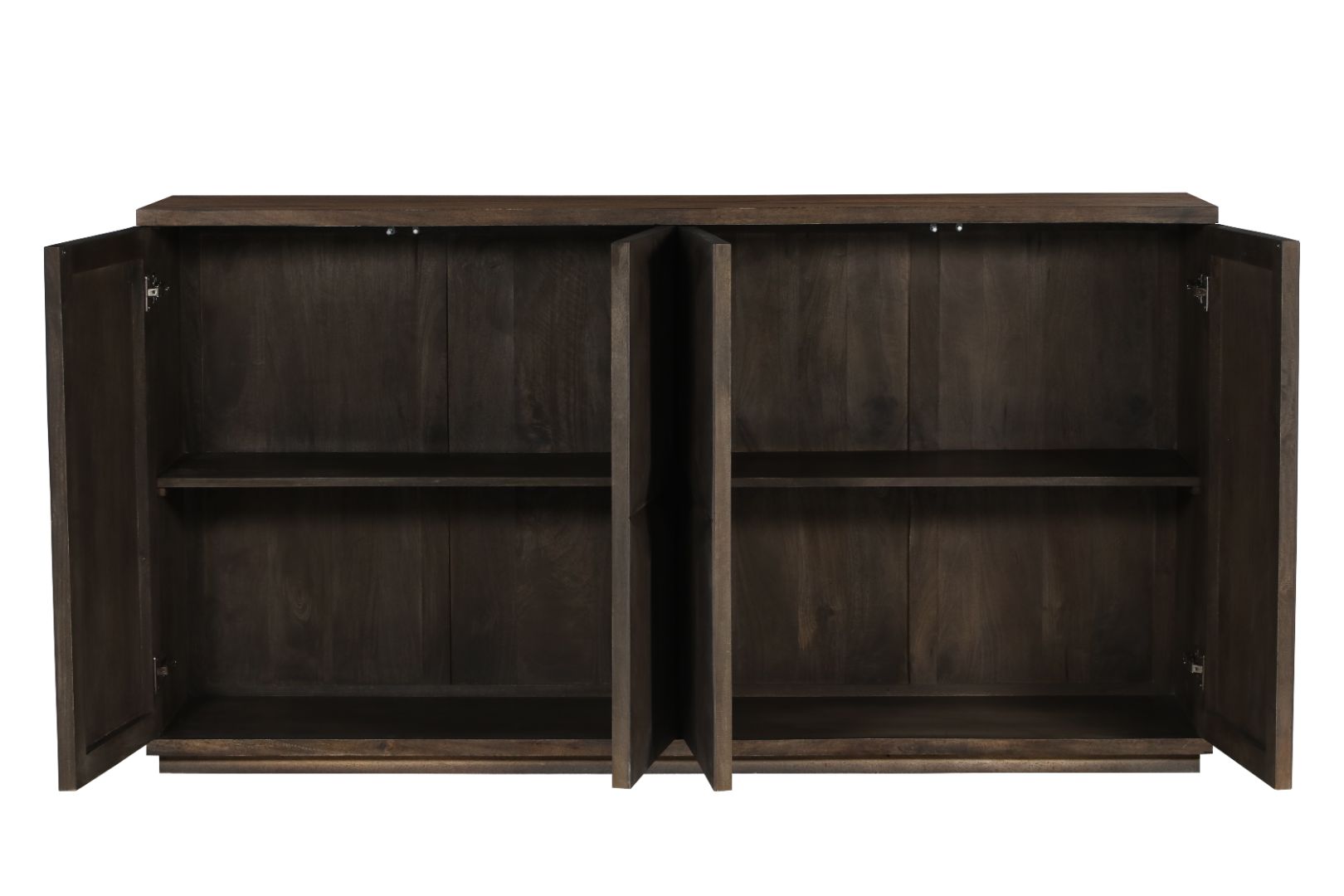Expertly crafted from solid mango wood, the Owen Sideboard boasts 4 push doors and stunning hand carved panels. Experience the quality and beauty of this unique piece in your home.