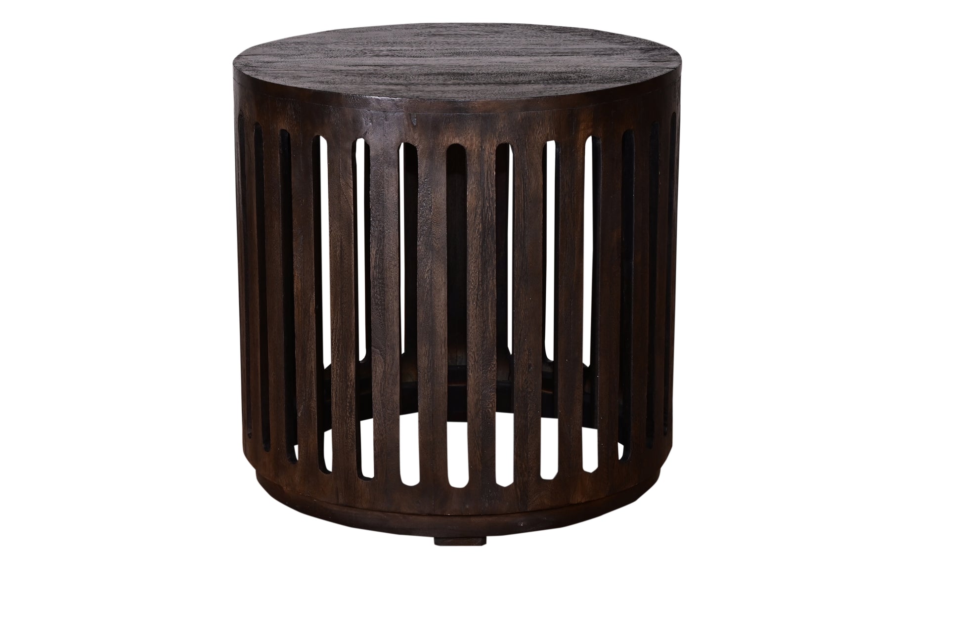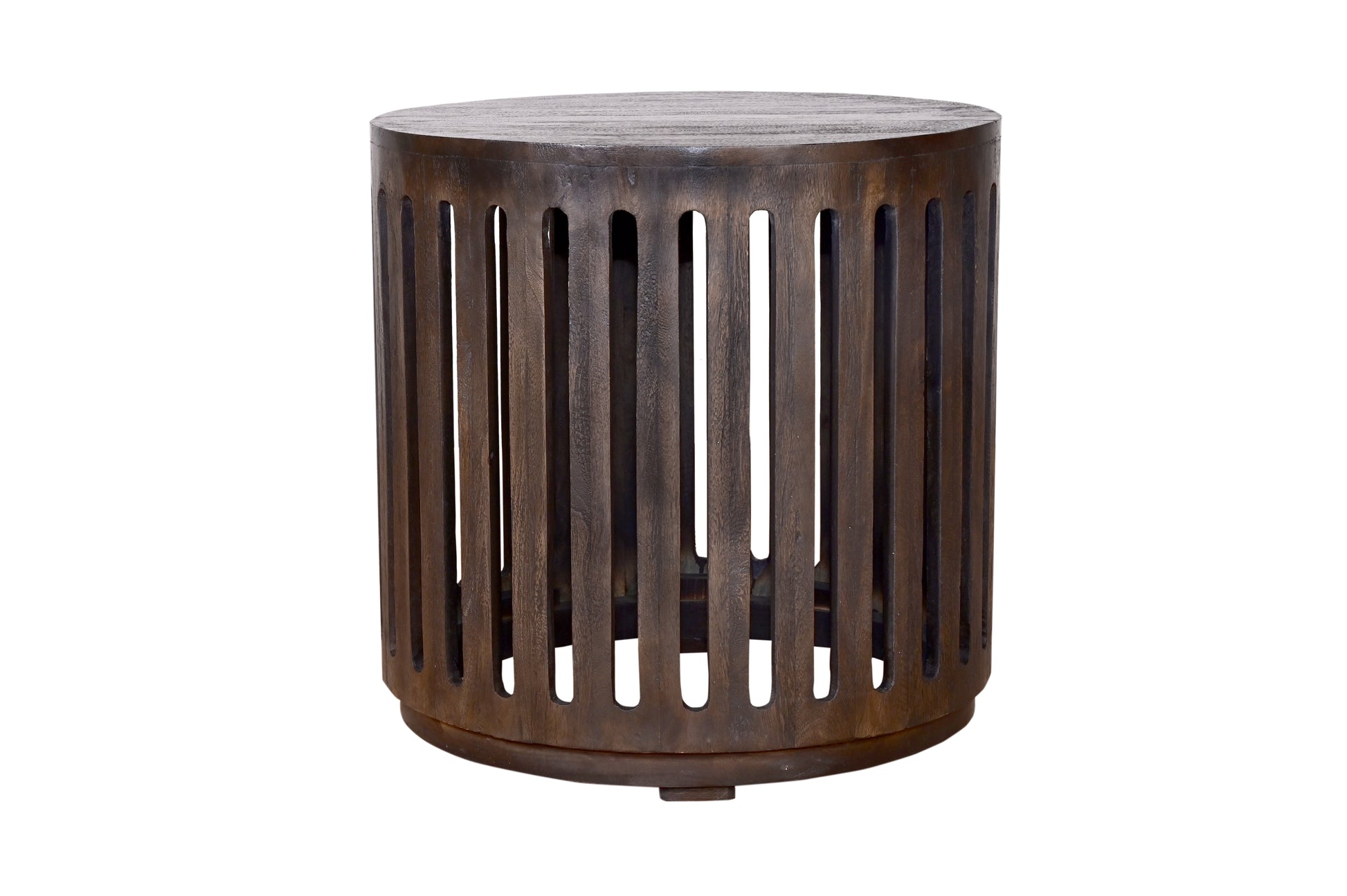 The Ryan Side Table is sure to enhance your home decor with its attractive, round design. Crafted with solid mango wood slats, it's sure to be a sturdy addition to your living space. Enjoy the elegance and unique look of this stylish side table.